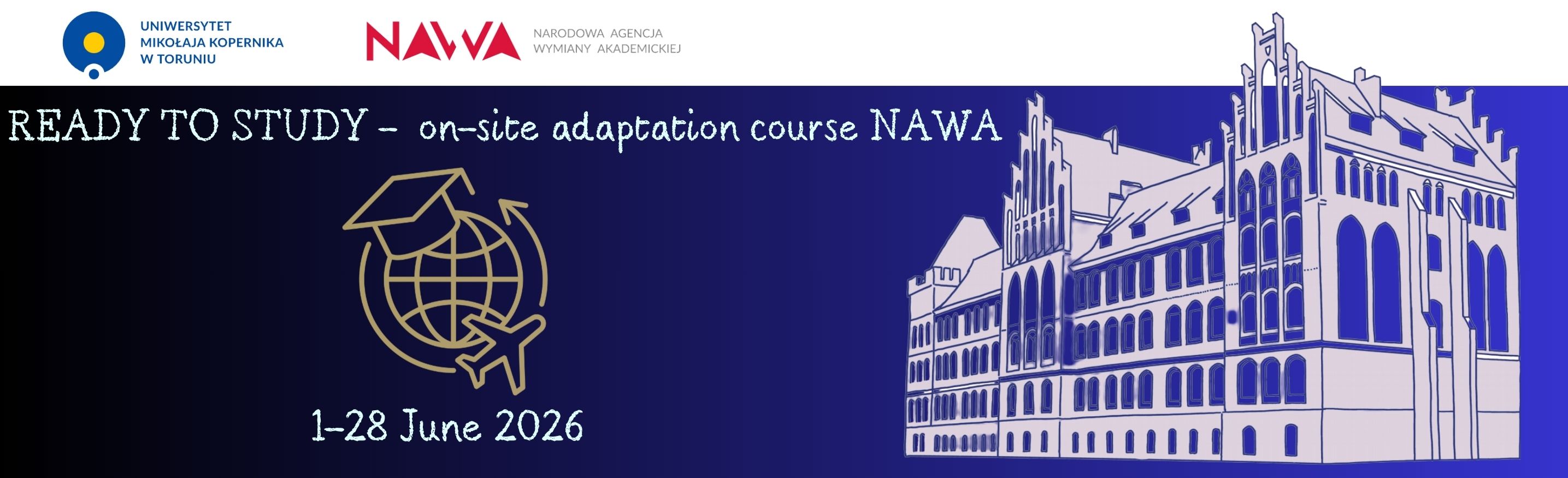 The NAWA “Ready to Study” on-site orientation course, organized by Nicolaus Copernicus University in Toruń, will run from June 1 to 28, 2026, and will include approximately 120 hours of classes and activities: